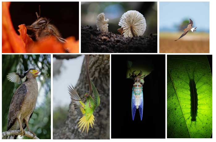 a Brahminy Kite swooping into Bolgoda Lake to catch a fish, only to release it after discovering it was trapped in plastic. The exhibition also highlighted often-overlooked species such as fungi, caterpillars, and ants. One photograph featuring a mushroom growing in the photographer’s backyard, submitted almost by chance, won first place in the ‘Biodiversity in the Backyard’ category, showing that conservation stories can emerge from even the smallest and most ordinary moments. In the school category, one student captured a beetle on a windowpane, encouraging a shift from focusing solely on charismatic species to appreciating everyday biodiversity.
