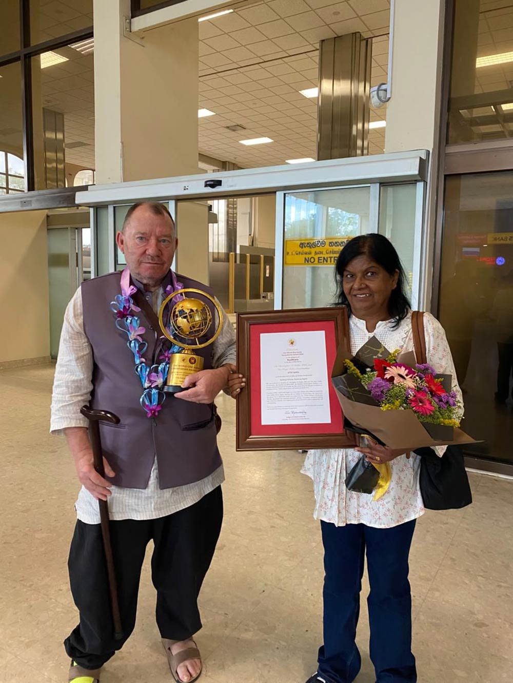 Dr. and Mrs. Stubbs returned to Sri Lanka on Friday, Nov. 21, where Serendipity Experiences and the Airport and Aviation Services of Sri Lanka welcomed them upon arrival. Speaking about the honour, Dr. Stubbs said, “It is a great honour for Ranji and I to represent Sri Lanka and MENCAFEP at the One World One Family, world festival of Culture, run by the Sai Baba Foundation and receive from Sadayaguru the One World Humanitarian award for Sri Lanka, not only for Ranji and myself, but for the children, families and staff of MENCAFEP over the past 40 years. Thank you all. And thank you to the Sai Baba Delegation from Sri Lanka for selecting MENCAFEP, a great honour for Sri Lanka and MENCAFEP.”