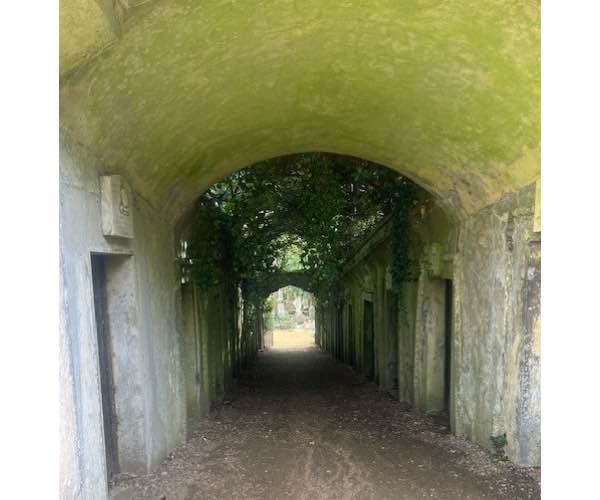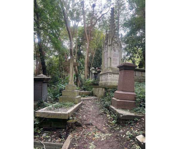 A taxi, a train, a bus and a walk, and we arrive. The organisation is impressive. There is a ten-pound cost per person to look around this 37-acre cemetery. They provide a ten-page guide. There are two separate areas and suggested walking routes. Inspiration for the cemetery is said to have come from the Père Lachaise Cemetery in Paris. I published an article on it last year. A charity was created to take over and run this London private cemetery, which had been suffering from neglect, subsidence, overgrown trees and vandalism.